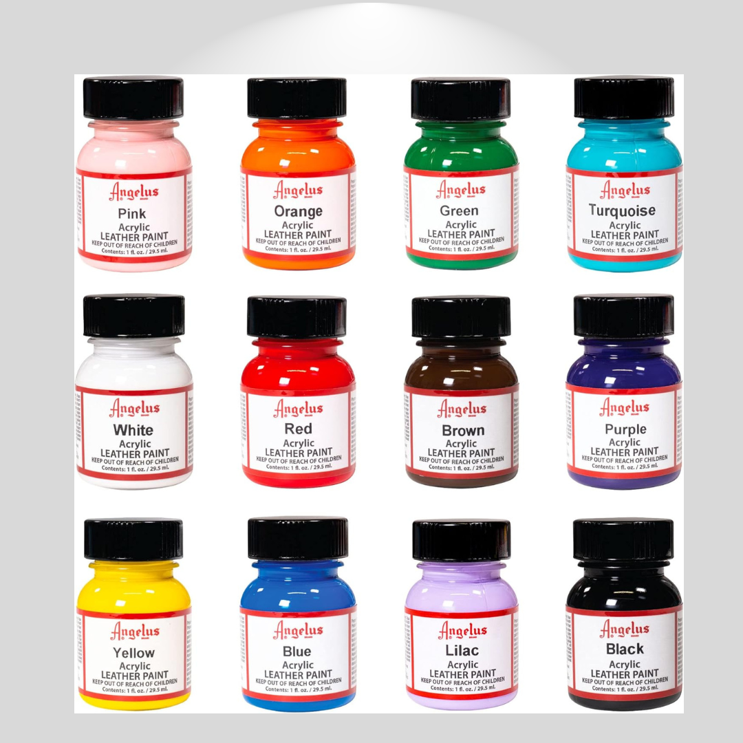 - Angelus Acrylic Leather Paint is the leader in custom leather colorings. Paints can be blended together for countless custom colors. Apply with a fine brush, sponge and airbrush.